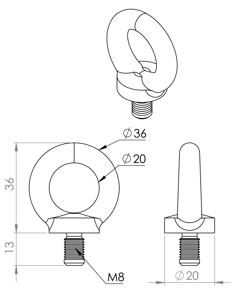 - Référence : Anneau de levage ISO 3266 M8 / DIN 580 M8